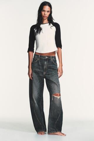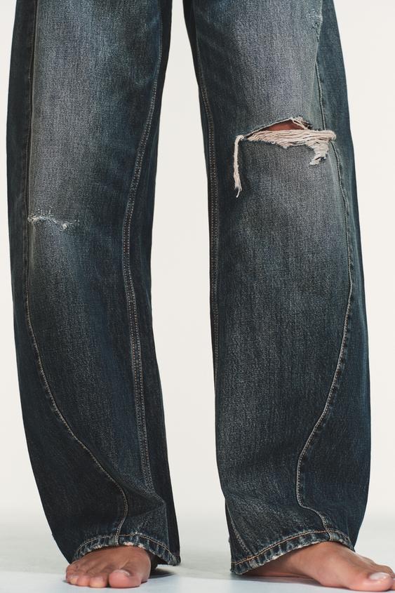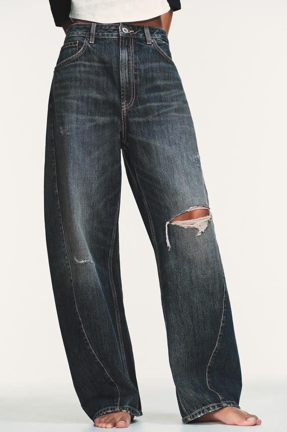 ZARA ДЖИНСЫ TRF BAGGY BALLOON СО СРЕДНЕЙ ПОСАДКОЙ, СИНИЙ