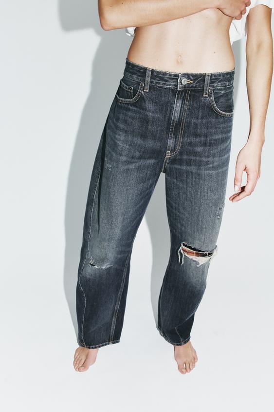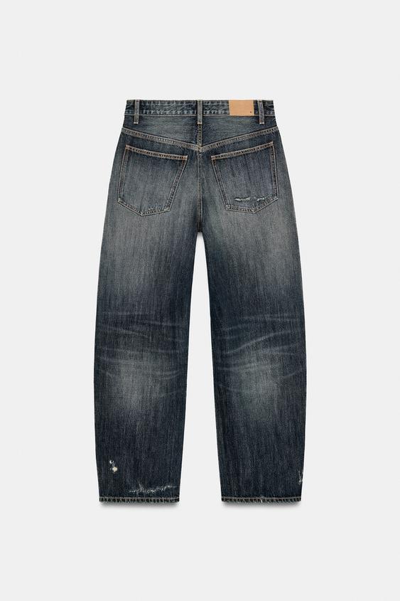 ZARA ДЖИНСЫ TRF BAGGY BALLOON СО СРЕДНЕЙ ПОСАДКОЙ, СИНИЙ