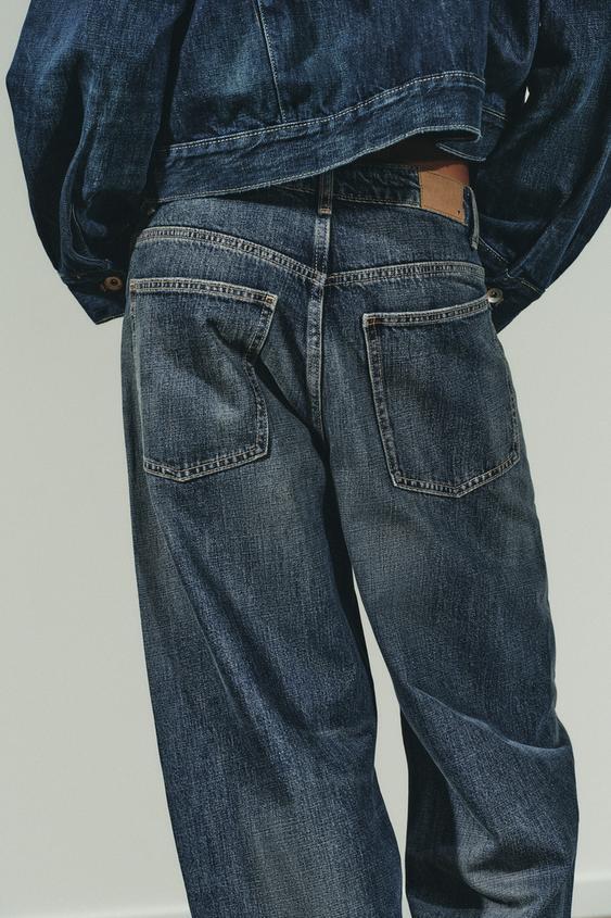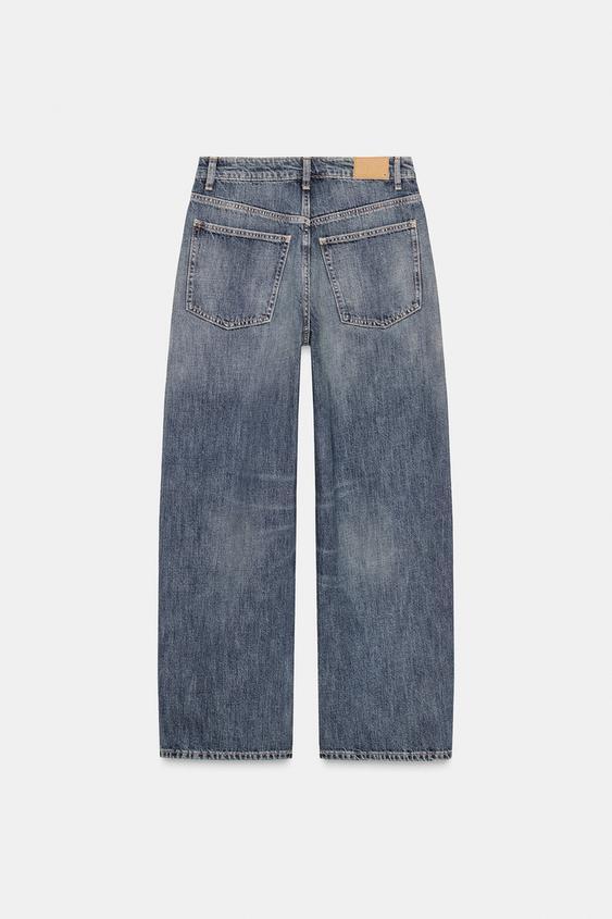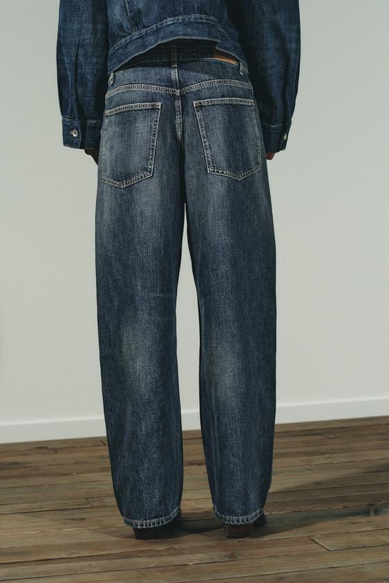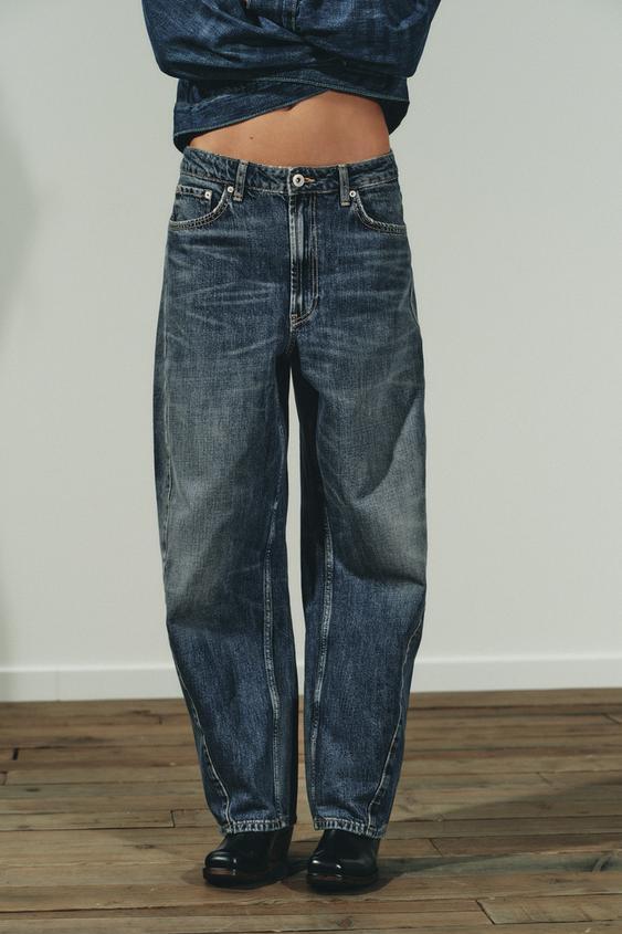 ZARA ДЖИНСЫ TRF BAGGY BALLOON СО СРЕДНЕЙ ПОСАДКОЙ, СИНИЙ