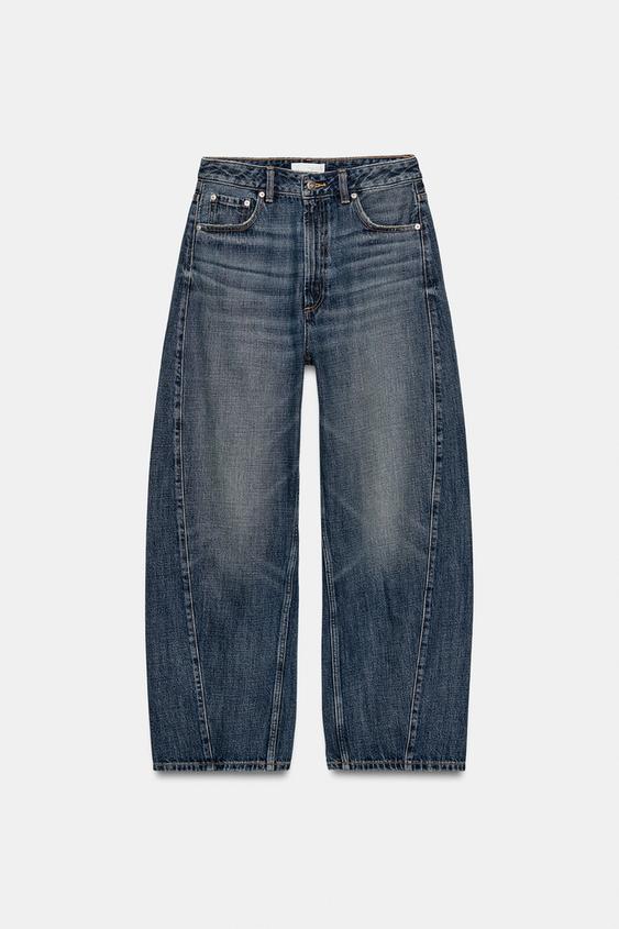ZARA ДЖИНСЫ TRF BAGGY BALLOON СО СРЕДНЕЙ ПОСАДКОЙ, ВЫЦВЕТШИЙ СИНИЙ