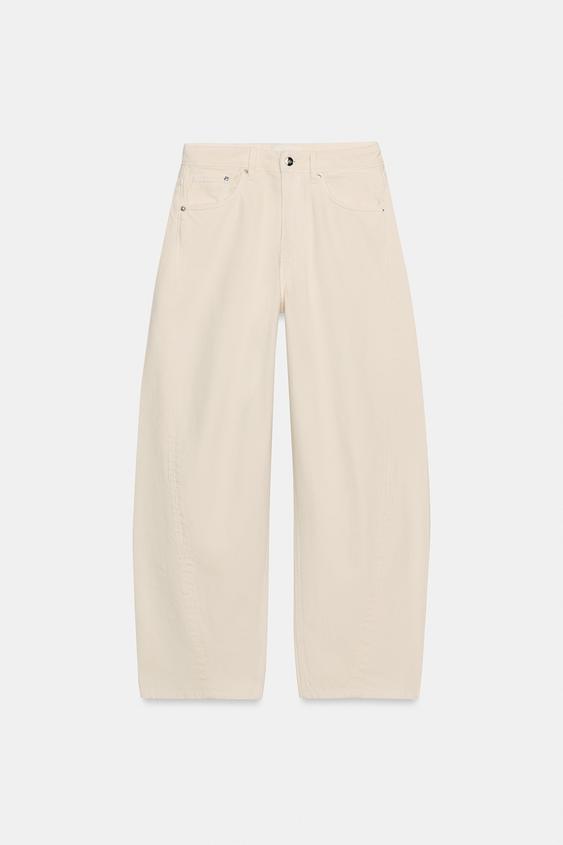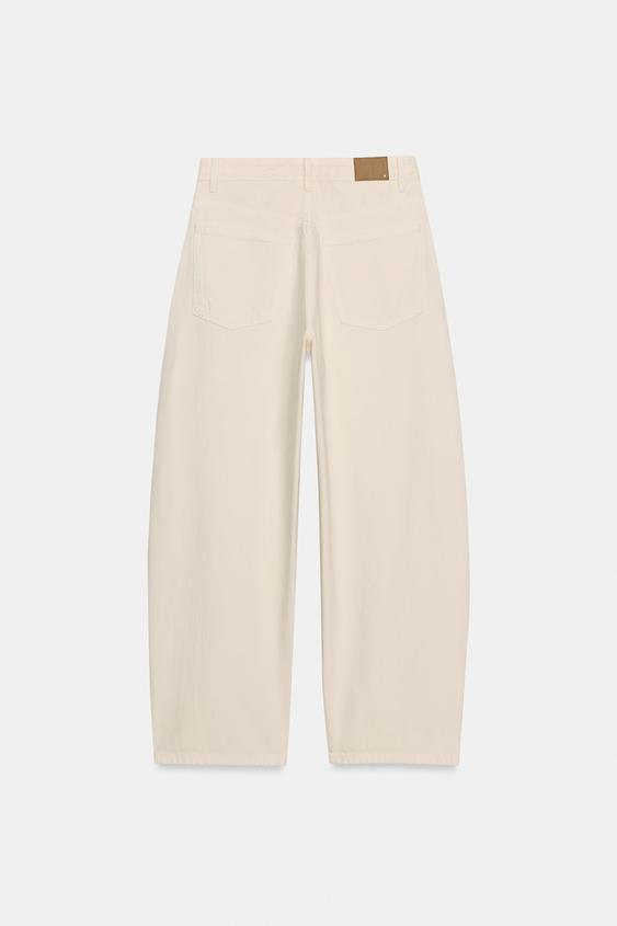 ZARA ДЖИНСЫ TRF BAGGY BALLOON СО СРЕДНЕЙ ПОСАДКОЙ, ЖЕЛТОВАТО-БЕЛЫЙ
