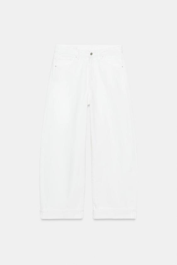 ZARA ДЖИНСЫ TRF BAGGY FOLDED С РАЗРЕЗАМИ, БЕЛЫЙ