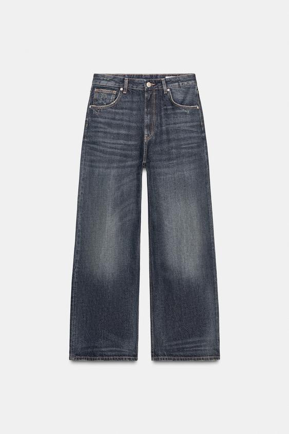 ZARA ДЖИНСЫ TRF BAGGY С РАЗРЕЗАМИ И СРЕДНЕЙ ПОСАДКОЙ, МОРСКОЙ СИНИЙ