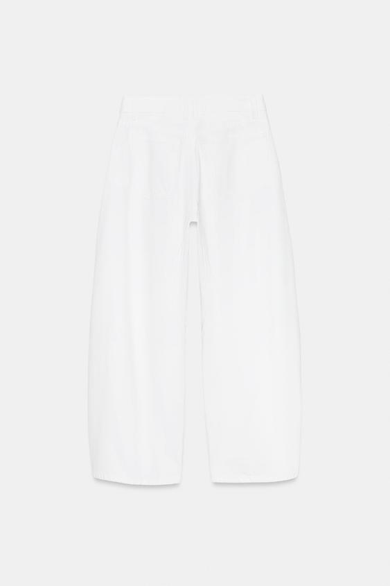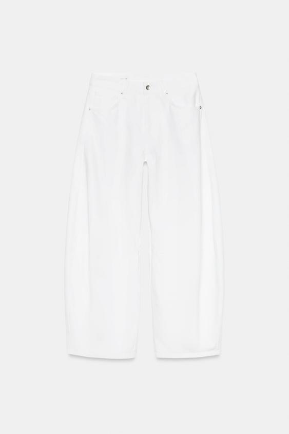ZARA ДЖИНСЫ TRF BALLOON СО СРЕДНЕЙ ПОСАДКОЙ, ЖЕЛТОВАТО-БЕЛЫЙ