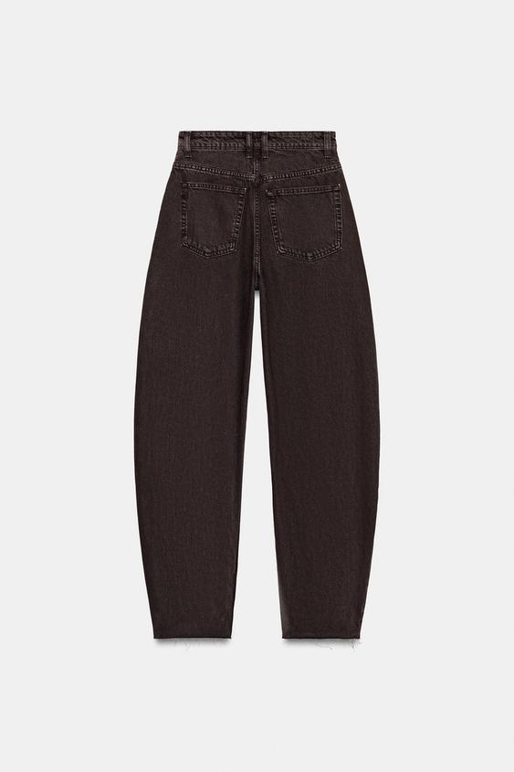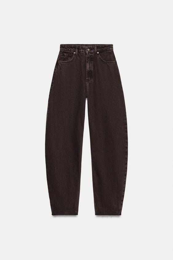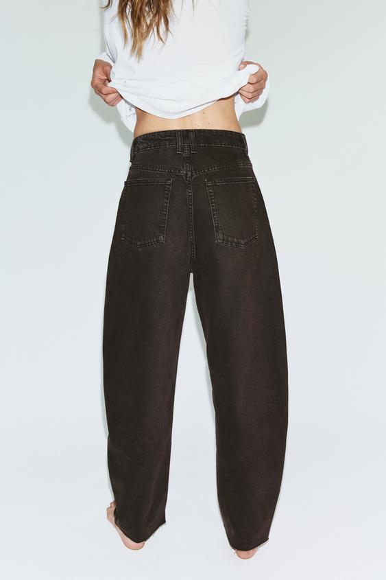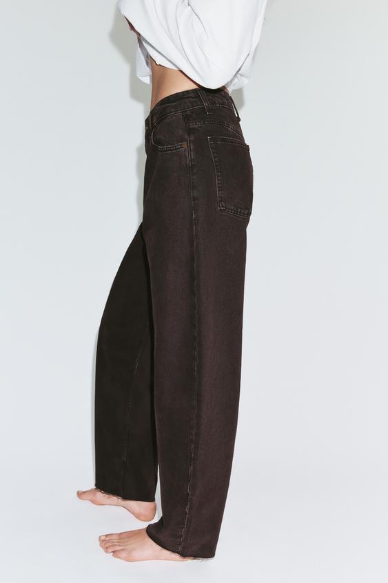 ZARA ДЖИНСЫ TRF BARREL С ВЫСОКОЙ ПОСАДКОЙ, КОРИЧНЕВЫЙ