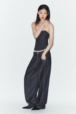 ZARA ДЖИНСЫ TRF BARREL С ВЫСОКОЙ ПОСАДКОЙ, ТЕМНЫЙ ИНДИГО