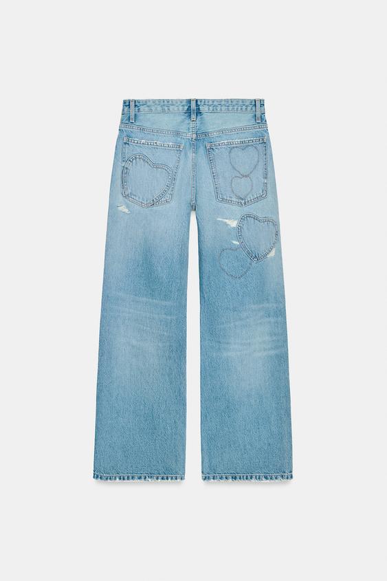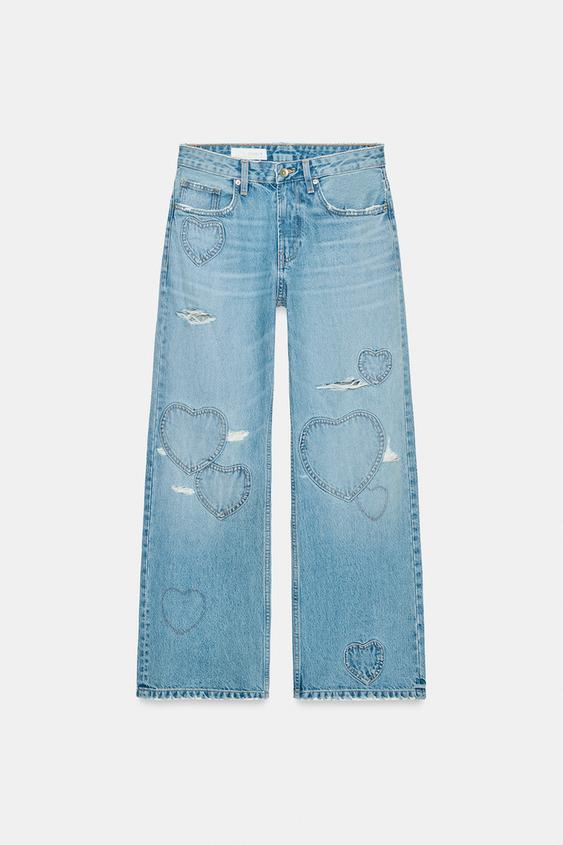 ZARA ДЖИНСЫ TRF BOYFRIEND С СЕРДЦАМИ И СРЕДНЕЙ ПОСАДКОЙ, СИНИЙ