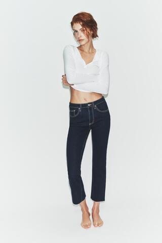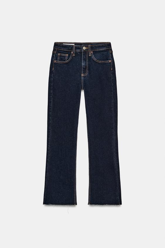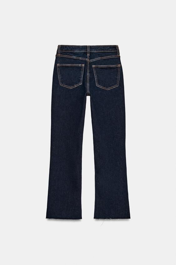 ZARA ДЖИНСЫ TRF CROPPED FLARE С ВЫСОКОЙ ПОСАДКОЙ, ТЕМНЫЙ ИНДИГО