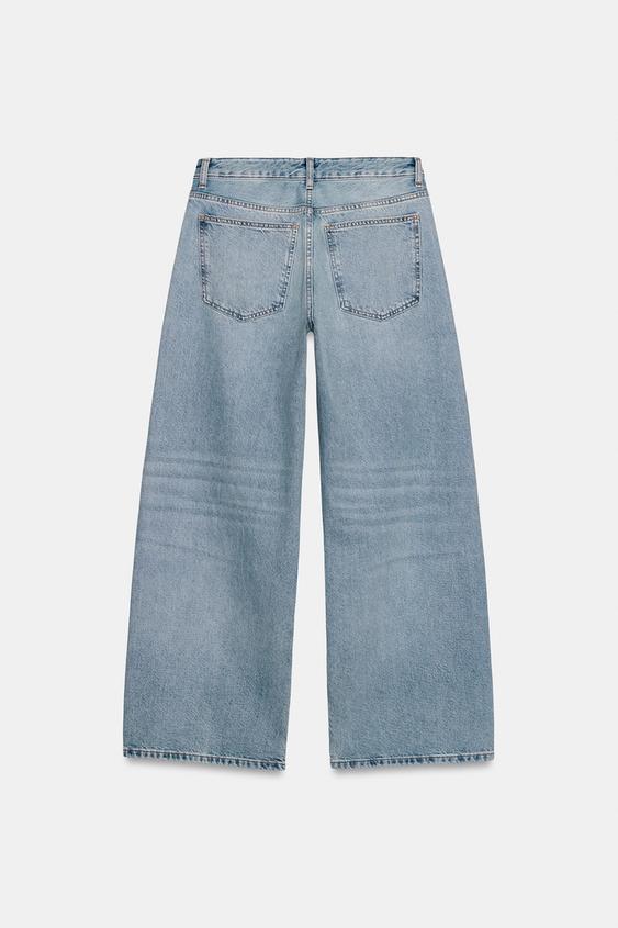 ZARA ДЖИНСЫ TRF EXTRA WIDE-LEG С ЗАКЛЕПКАМИ И ВЫСОКОЙ ПОСАДКОЙ, ГОЛУБОЙ