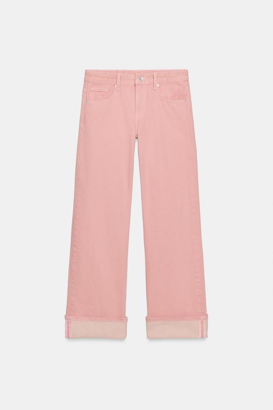 ZARA ДЖИНСЫ TRF LOOSE С НИЗКОЙ ПОСАДКОЙ И ОТВОРОТАМИ, РОЗОВЫЙ