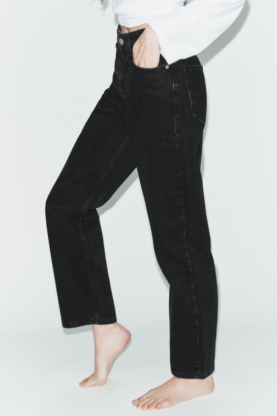 ZARA ДЖИНСЫ TRF MOM FIT С ВЫСОКОЙ ПОСАДКОЙ, ЧЕРНЫЙ