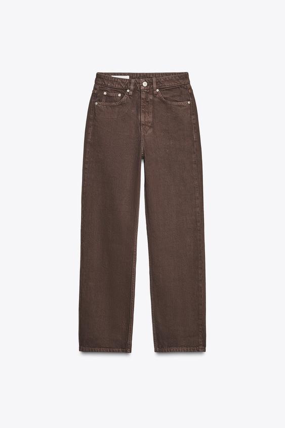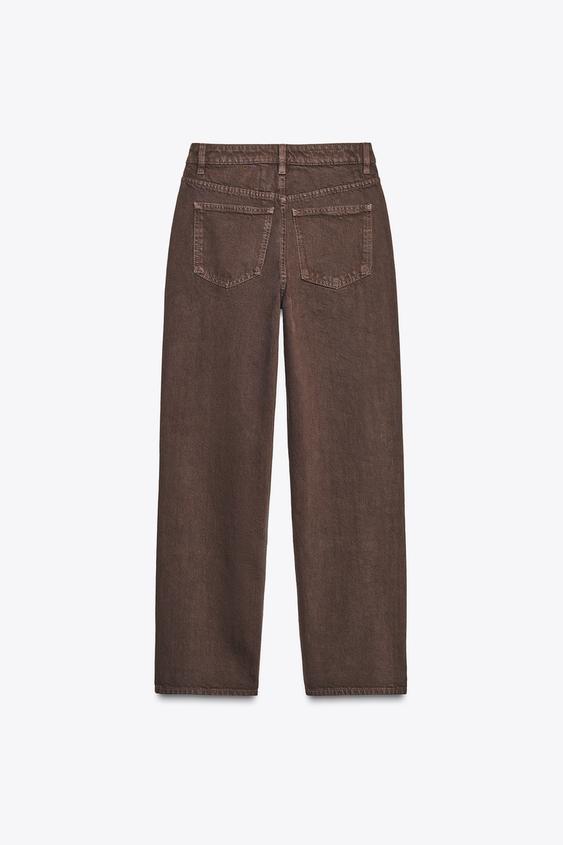 ZARA ДЖИНСЫ TRF MOM FIT С ВЫСОКОЙ ПОСАДКОЙ, КОРИЧНЕВЫЙ