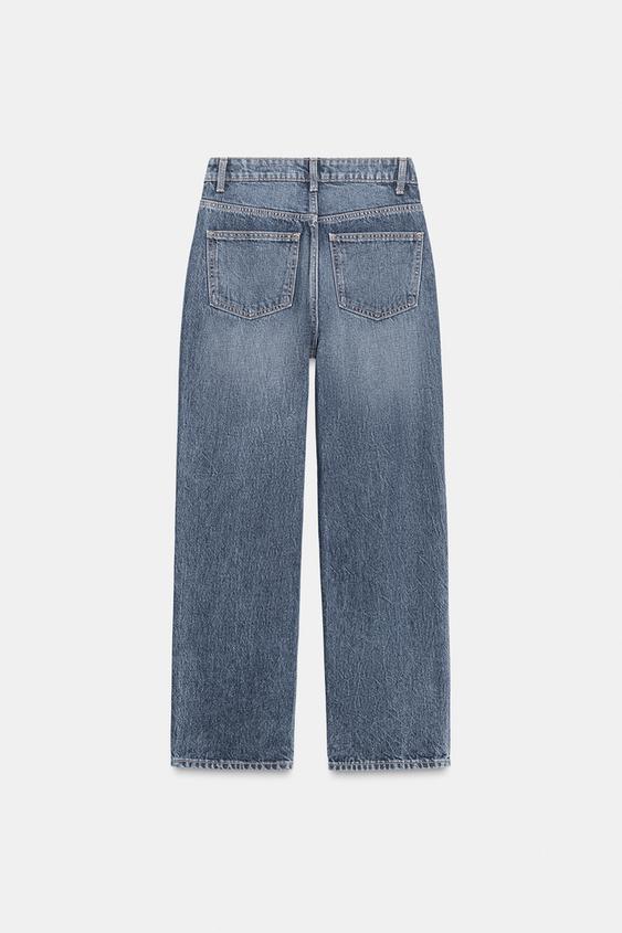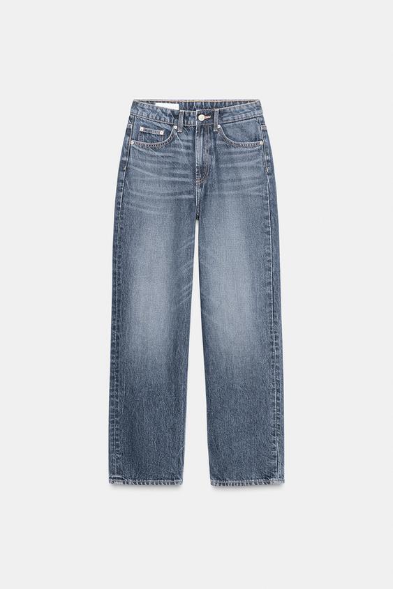 ZARA ДЖИНСЫ TRF MOM FIT С ВЫСОКОЙ ПОСАДКОЙ, МОРСКОЙ СИНИЙ