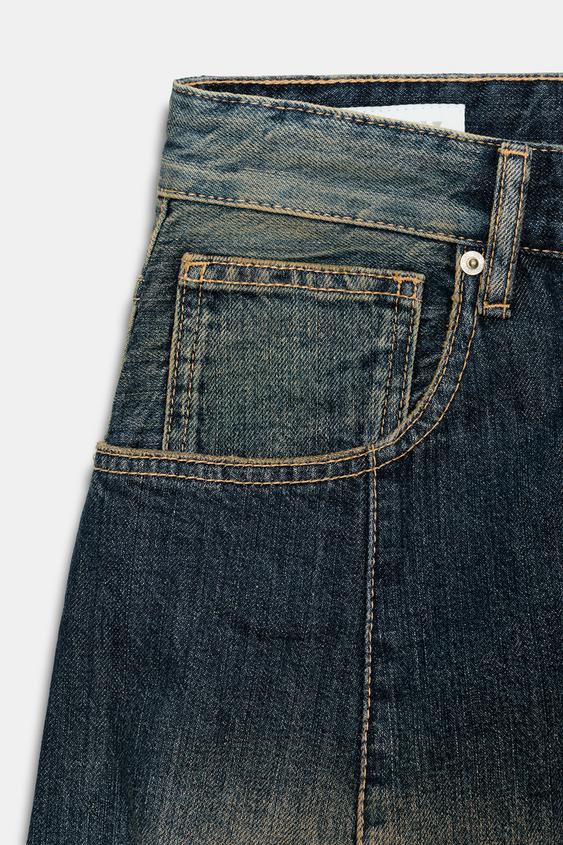 ZARA ДЖИНСЫ TRF ОВЕРСАЙЗ СО СРЕДНЕЙ ПОСАДКОЙ, МОРСКОЙ СИНИЙ