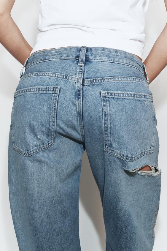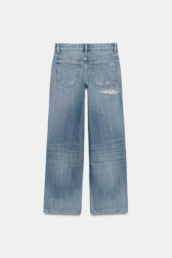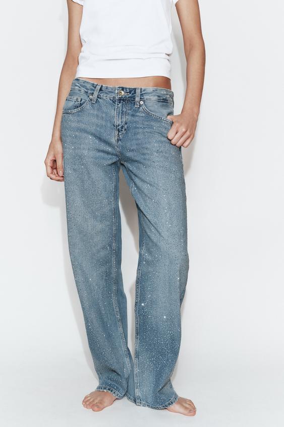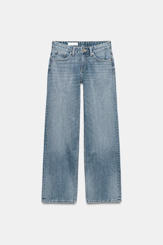 ZARA ДЖИНСЫ TRF ПРЯМОГО КРОЯ С НИЗКОЙ ПОСАДКОЙ И БЛЕСТКАМИ, МОРСКОЙ СИНИЙ