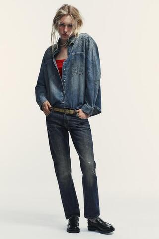 ZARA ДЖИНСЫ TRF ПРЯМОГО КРОЯ С НИЗКОЙ ПОСАДКОЙ, МОРСКОЙ СИНИ