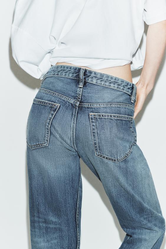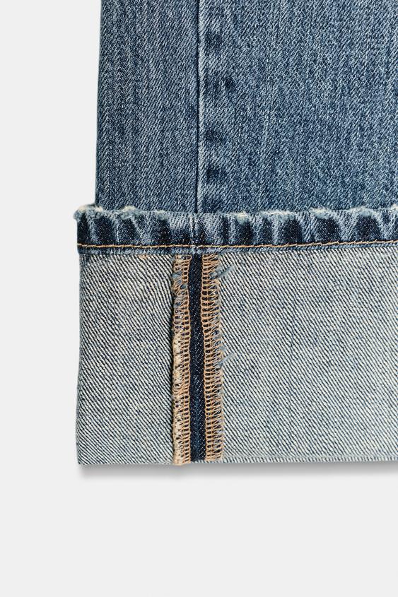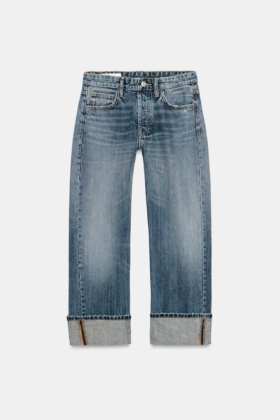 ZARA ДЖИНСЫ TRF ПРЯМОГО КРОЯ С ОТВОРОТАМИ И СРЕДНЕЙ ПОСАДКОЙ, СИНИЙ
