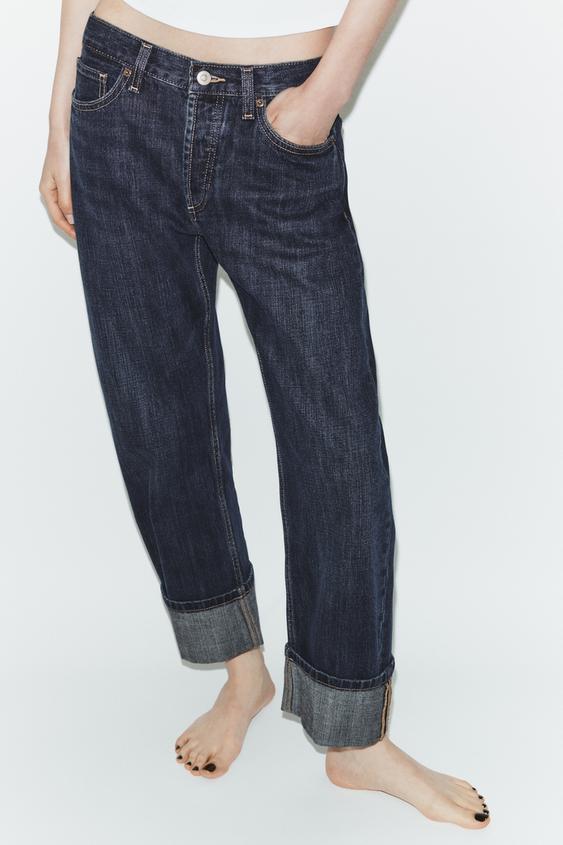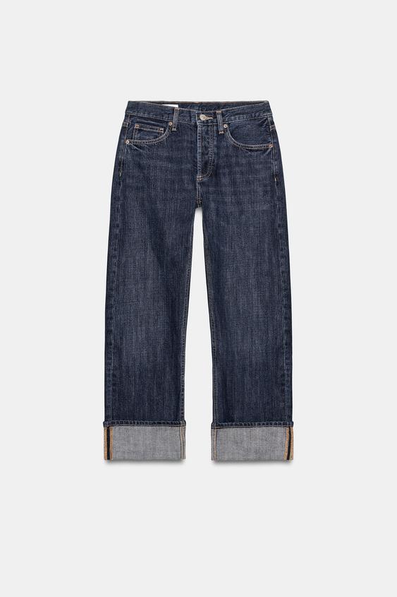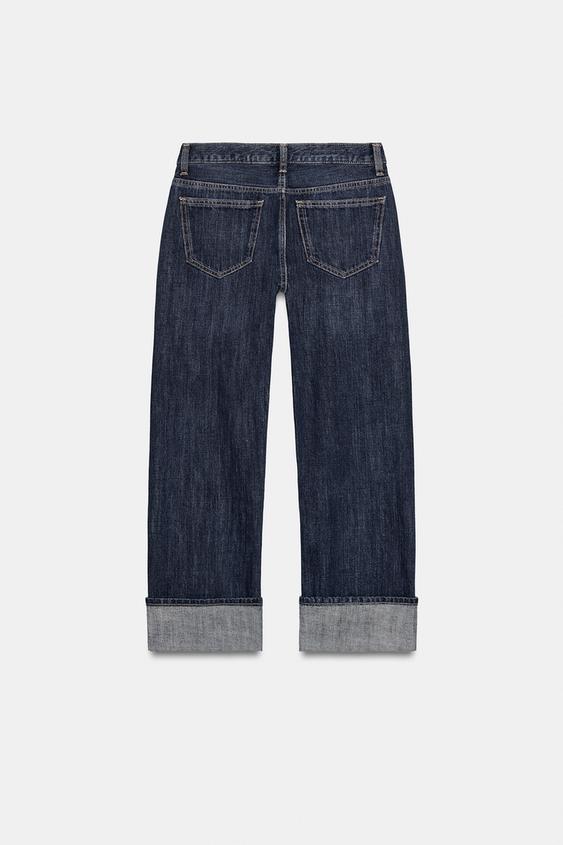 ZARA ДЖИНСЫ TRF ПРЯМОГО КРОЯ С ОТВОРОТАМИ И СРЕДНЕЙ ПОСАДКОЙ, ТЕМНЫЙ ИНДИГО