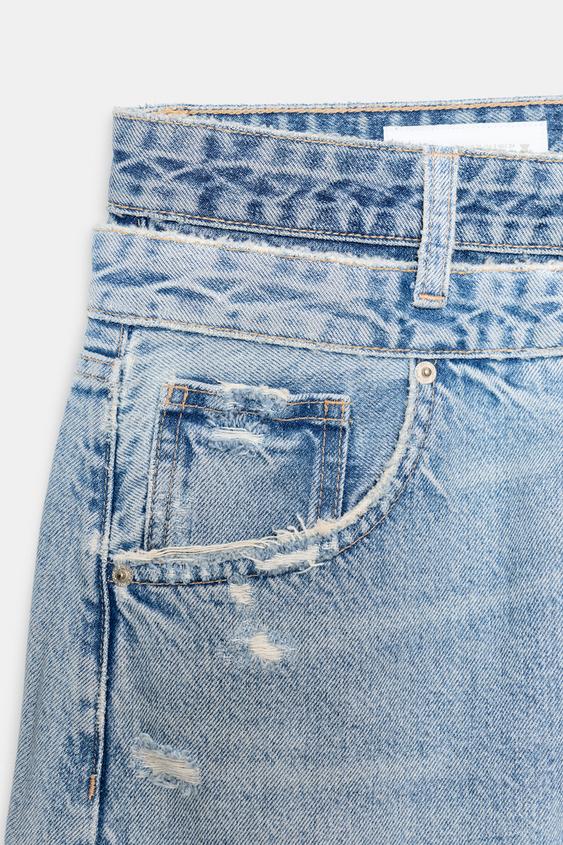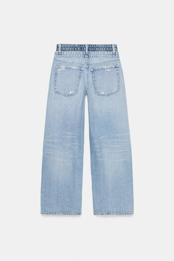 ZARA ДЖИНСЫ TRF ПРЯМОГО КРОЯ СО СРЕДНЕЙ ПОСАДКОЙ И ДВОЙНЫМ ПОЯСОМ, НЕБЕСНО-ГОЛУБОЙ