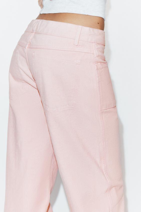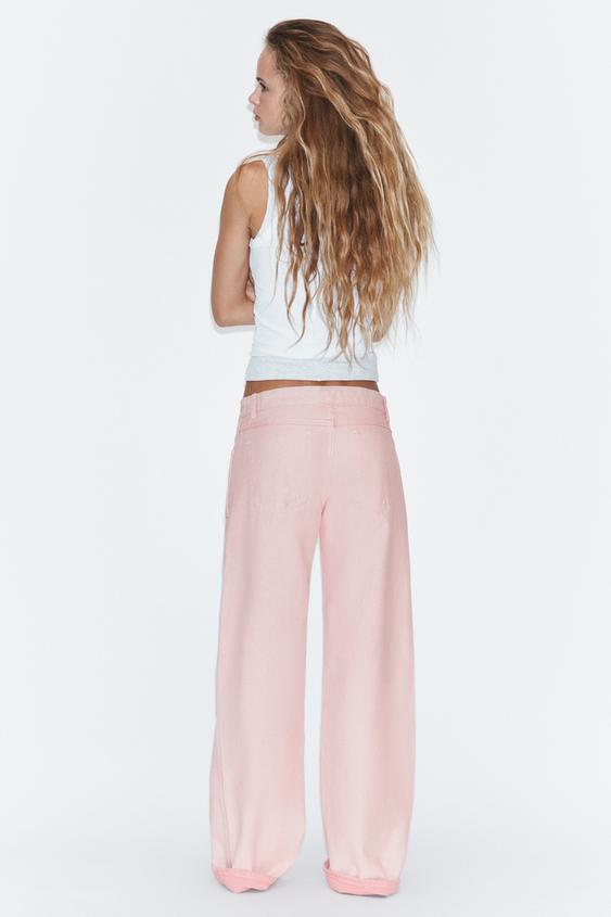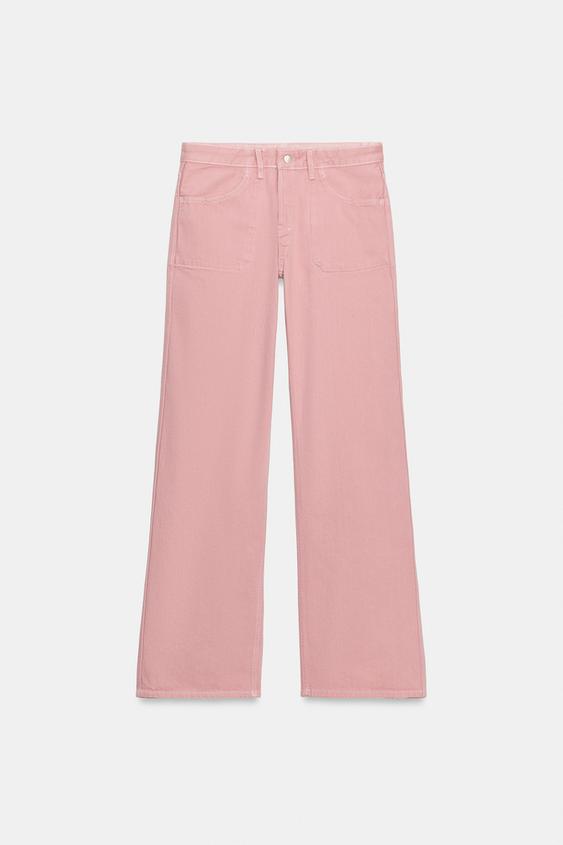 ZARA ДЖИНСЫ TRF РЕВЕРСИВНЫЕ СО СРЕДНЕЙ ПОСАДКОЙ, РОЗОВЫЙ