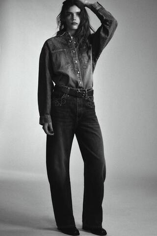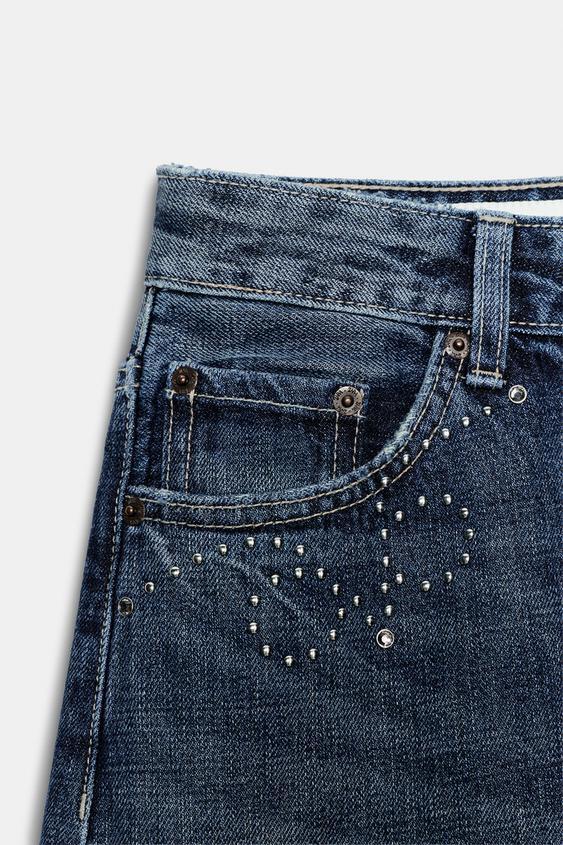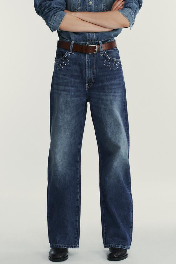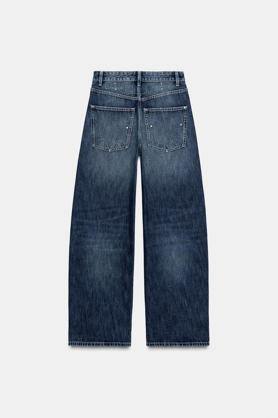 ZARA ДЖИНСЫ TRF С МЕТАЛЛИЧЕСКИМИ ЗАКЛЕПКАМИ, МОРСКОЙ СИНИЙ