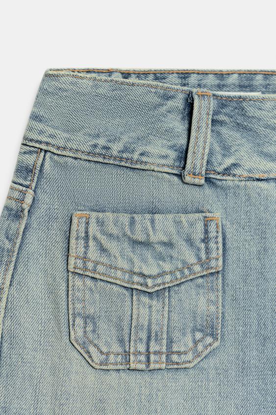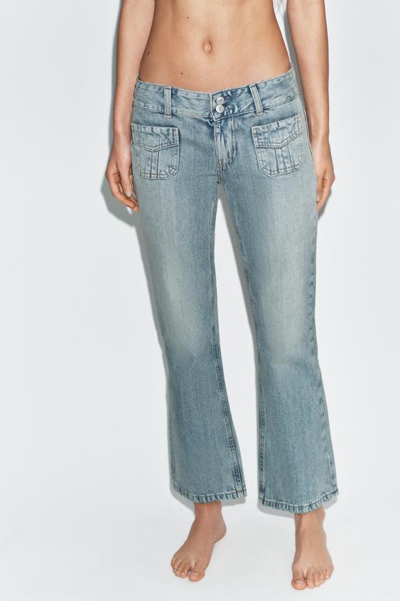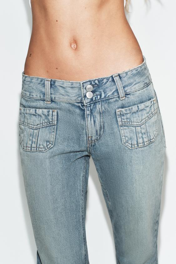ZARA ДЖИНСЫ TRF С НИЗКОЙ ПОСАДКОЙ И КАРМАНАМИ, ГОЛУБОЙ
