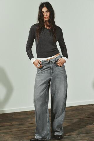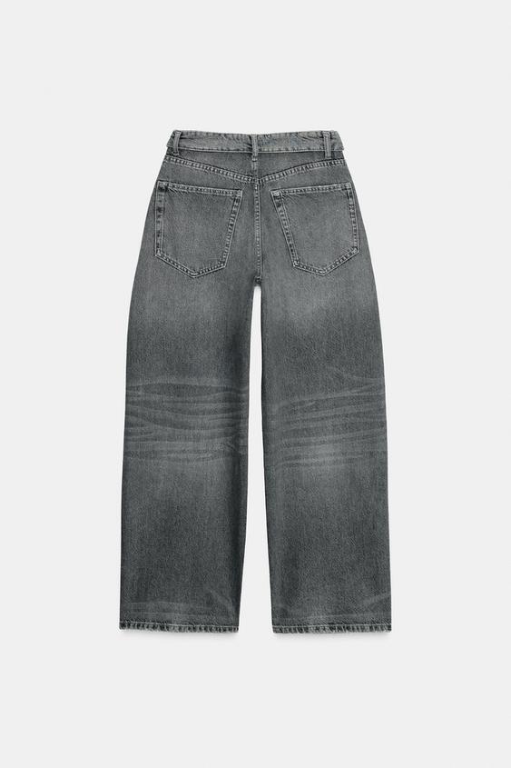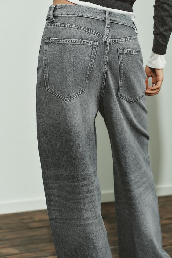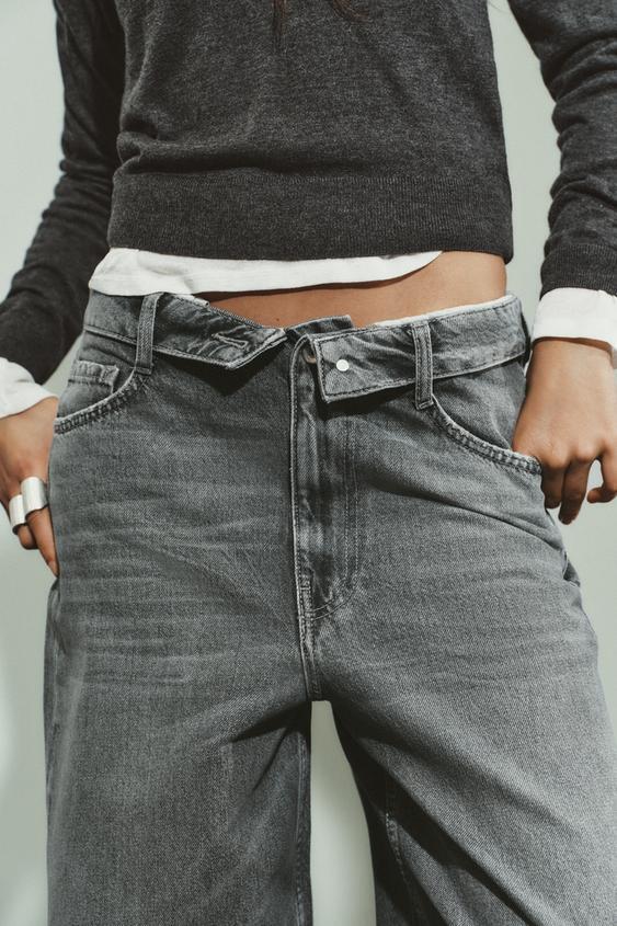ZARA ДЖИНСЫ TRF СО СРЕДНЕЙ ПОСАДКОЙ И ОТВОРОТОМ НА ПОЯСЕ, СЕРЫЙ