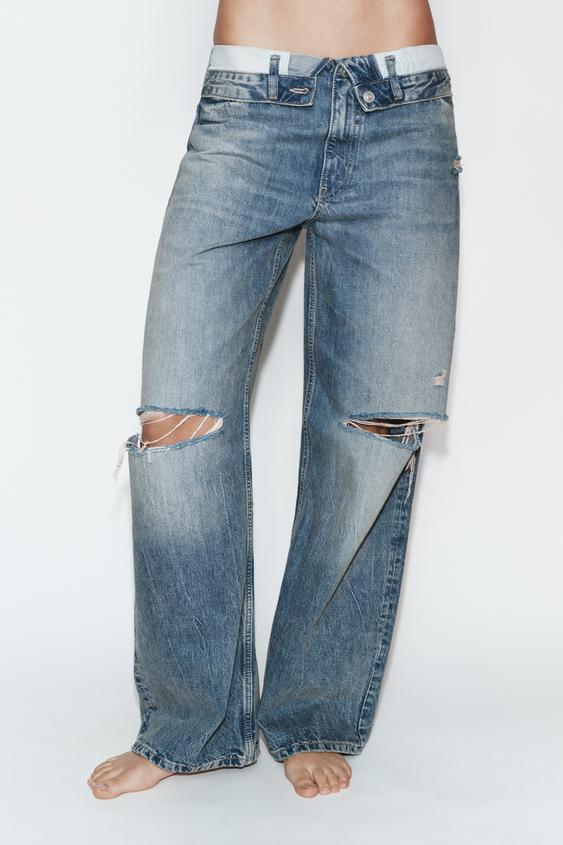 ZARA ДЖИНСЫ TRF СО СРЕДНЕЙ ПОСАДКОЙ И ОТВОРОТОМ, СИНИЙ