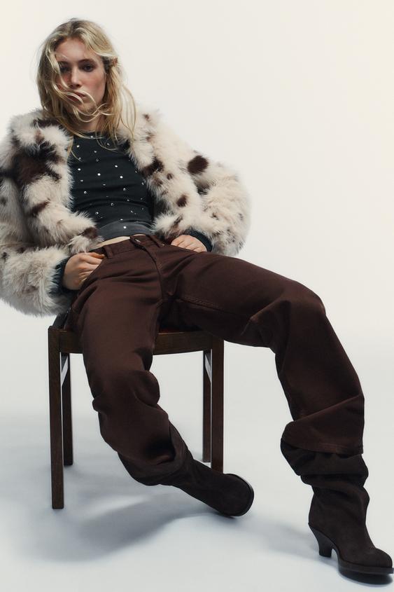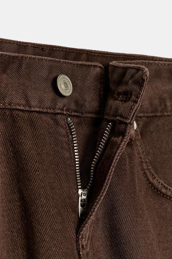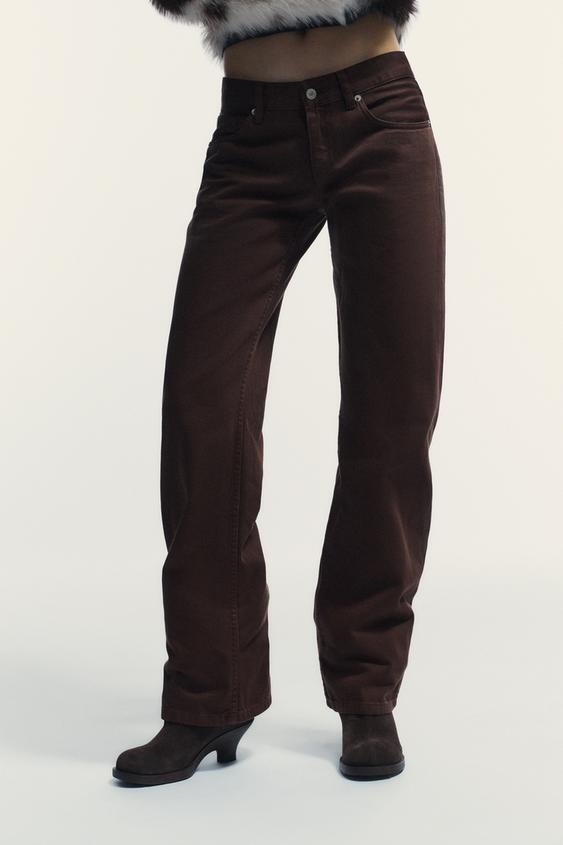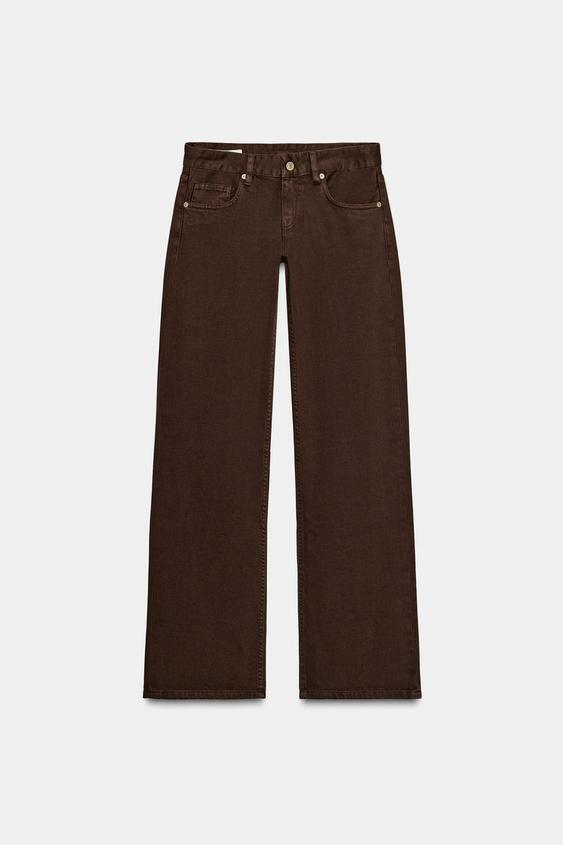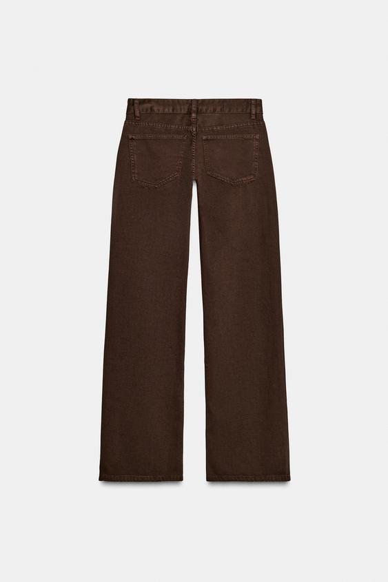 ZARA ДЖИНСЫ TRF WIDE-LEG С НИЗКОЙ ПОСАДКОЙ, ШОКОЛАДНЫЙ