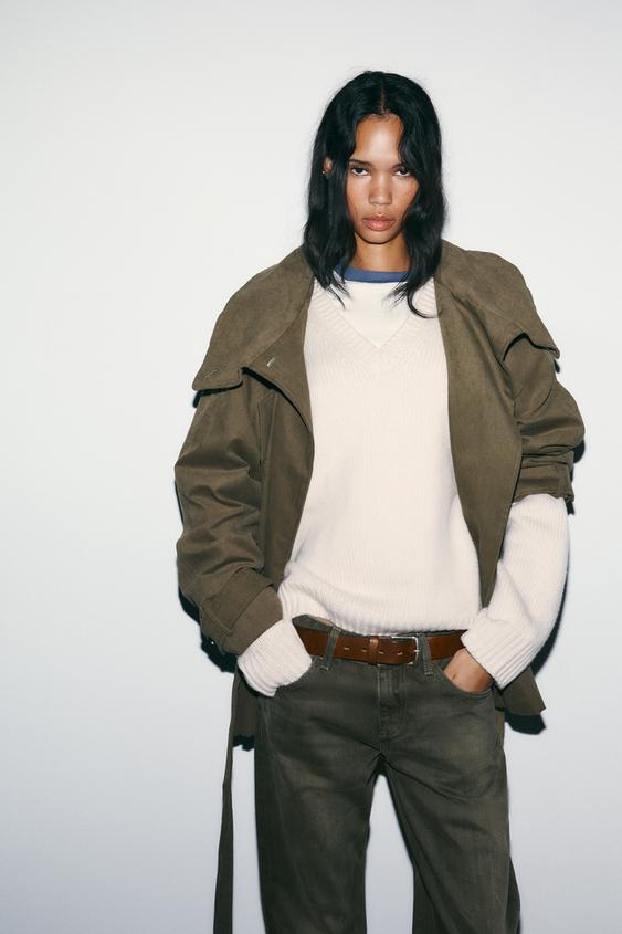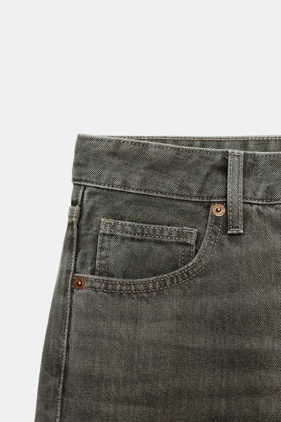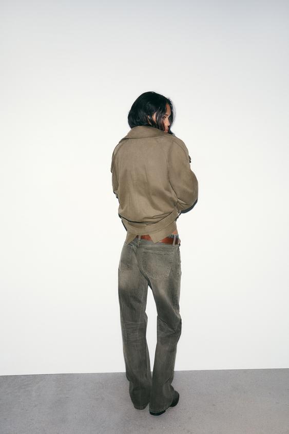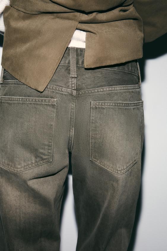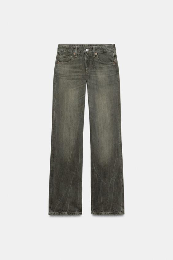 ZARA ДЖИНСЫ TRF WIDE-LEG С НИЗКОЙ ПОСАДКОЙ, СВЕТЛЫЙ ХАКИ