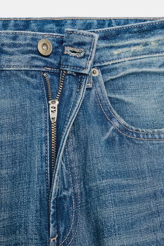 ZARA ДЖИНСЫ TRF WIDE LEG С ВЫСОКОЙ ПОСАДКОЙ И КОЖАНЫМИ КАРМАНАМИ, СИНИЙ