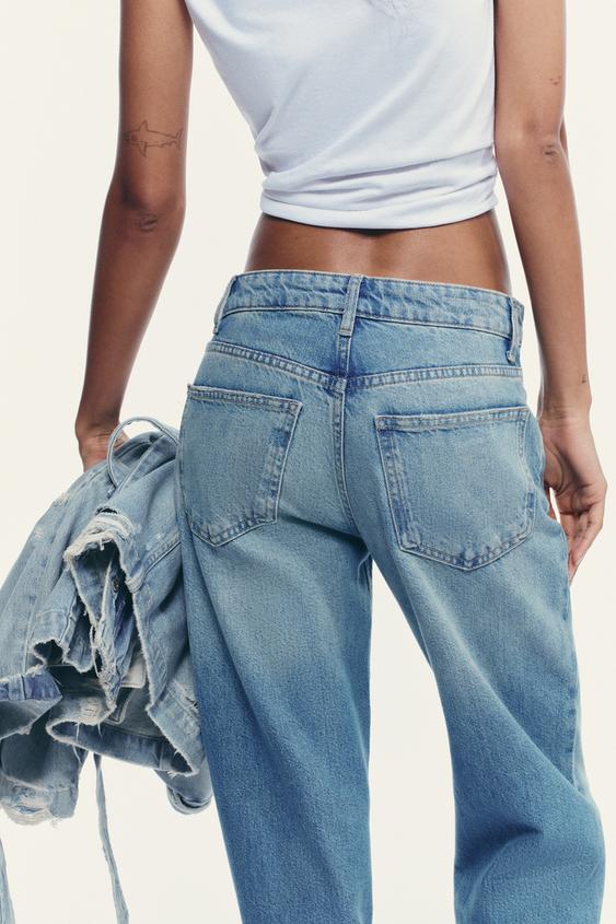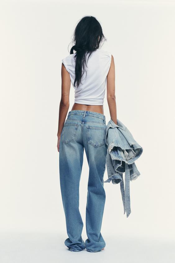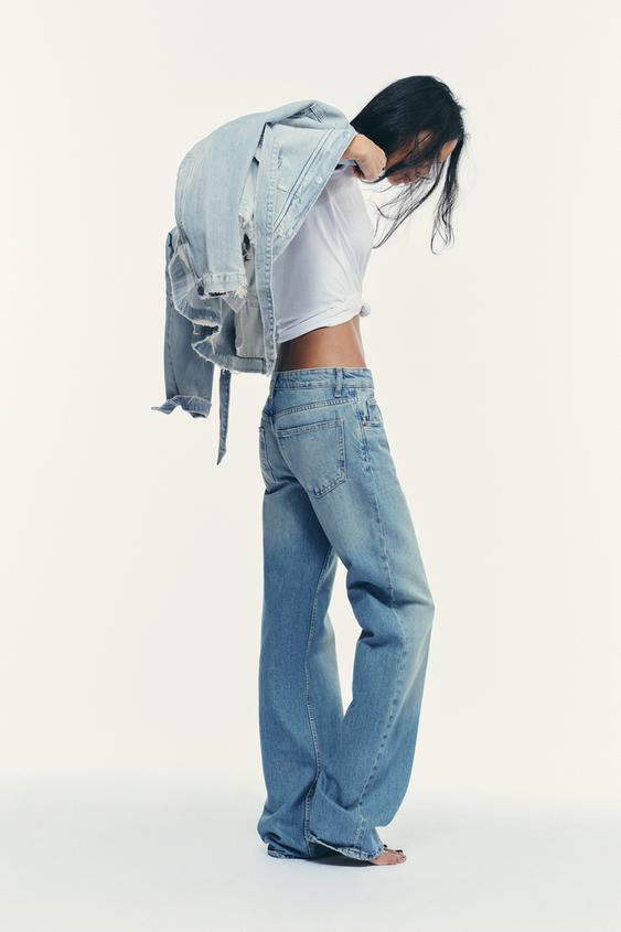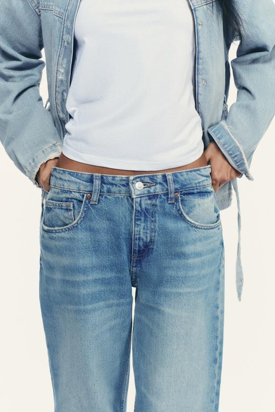 ZARA ДЖИНСЫ TRF WIDE LEG СО СРЕДНЕЙ ПОСАДКОЙ, ГОЛУБОЙ