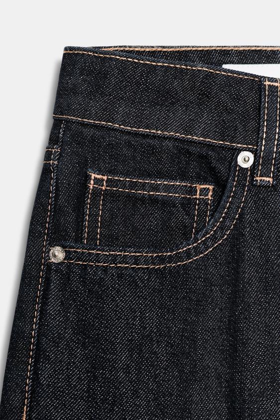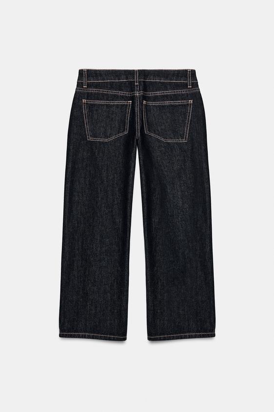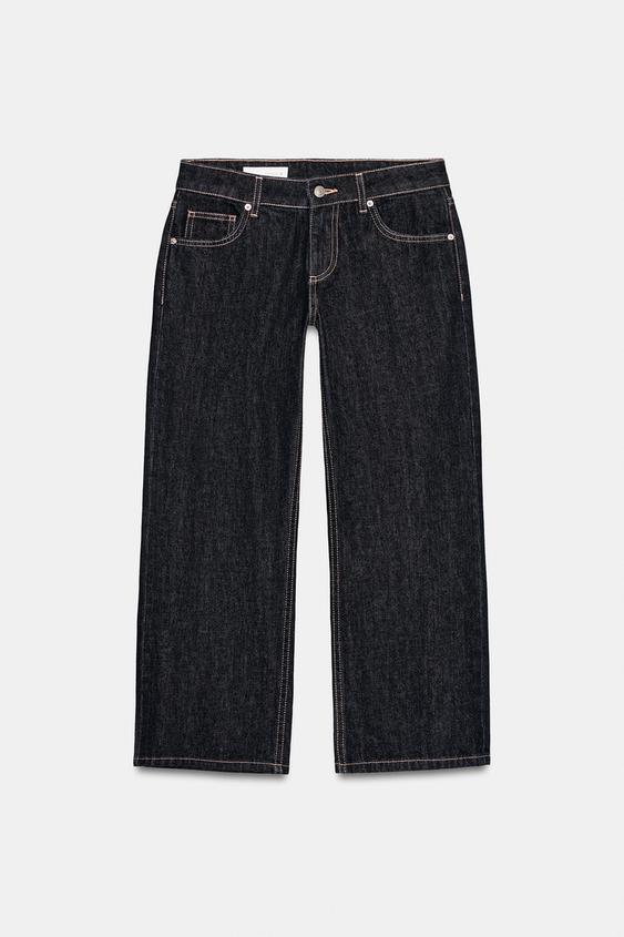 ZARA ДЖИНСЫ TRF WIDE LEG УКОРОЧЕННЫЕ С НИЗКОЙ ПОСАДКОЙ, МОРСКОЙ ТЕМНО-СИНИЙ