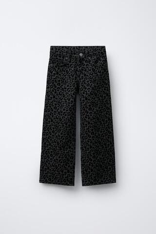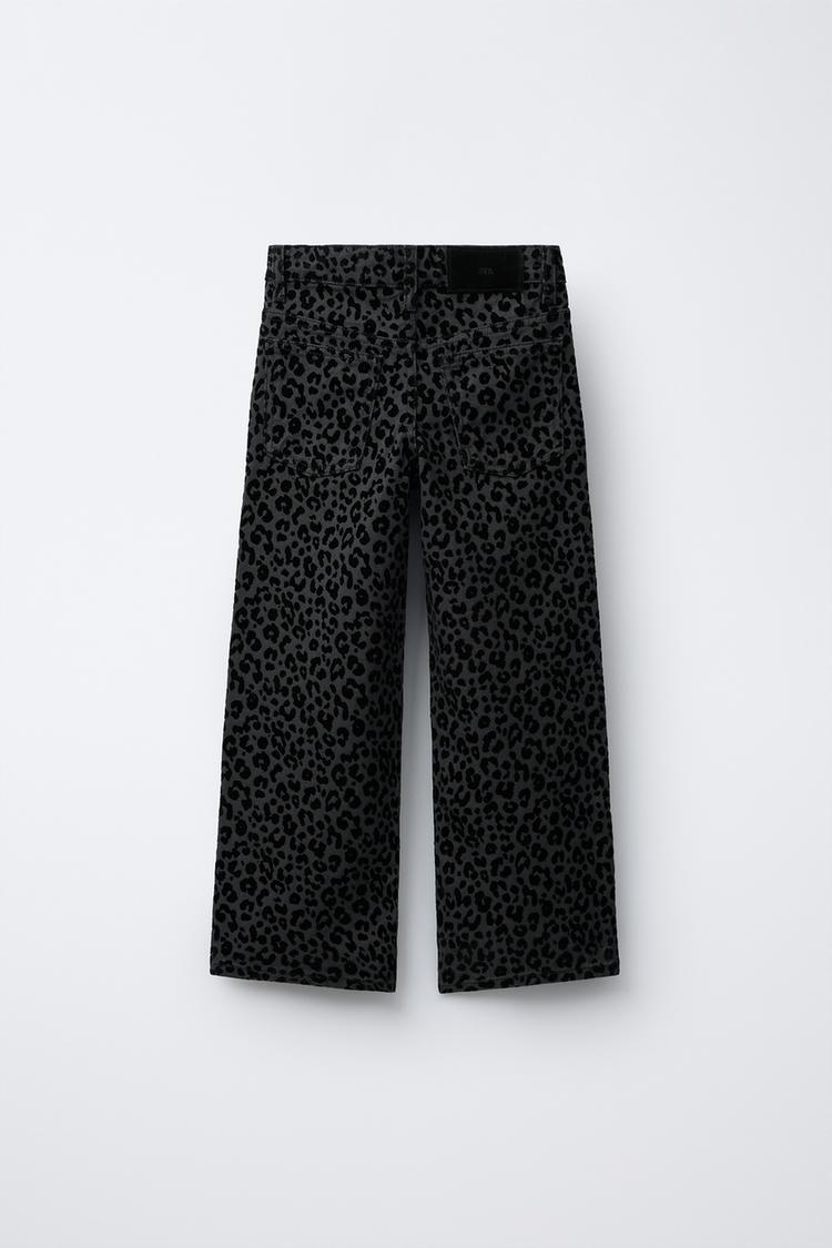 ZARA ДЖИНСЫ WIDE LEG С АНИМАЛИСТИЧЕСКИМ ФЛОК-ПРИНТОМ, ЧЕРНЫЙ