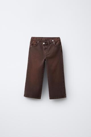 ZARA ДЖИНСЫ WIDE LEG С ПЕРЕКРЕСТНОЙ ЗАСТЕЖКОЙ, КОРИЧНЕВЫЙ