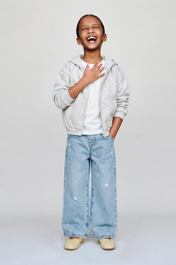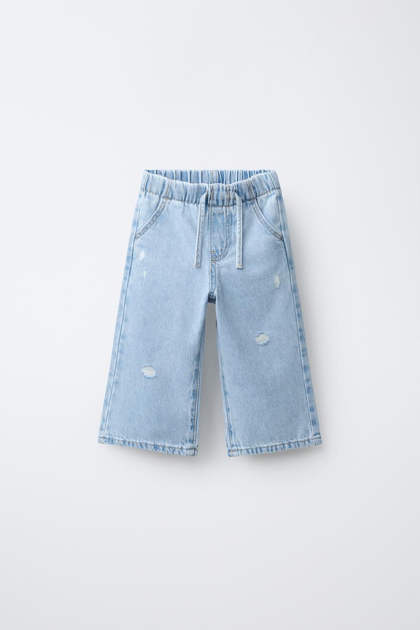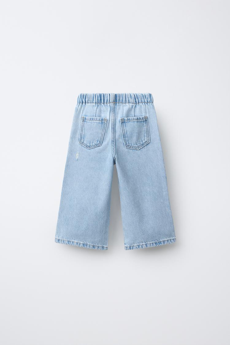 ZARA ДЖИНСЫ WIDE LEG С РАЗРЕЗАМИ, ГОЛУБОЙ