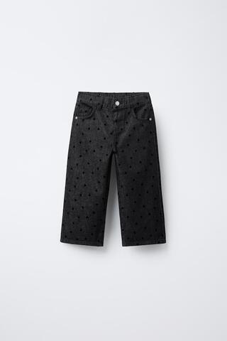 ZARA ДЖИНСЫ WIDE LEG С СЕРДЕЧКАМИ И ФЛОКОВЫМ ПОКРЫТИЕМ, ЧЕРНЫЙ