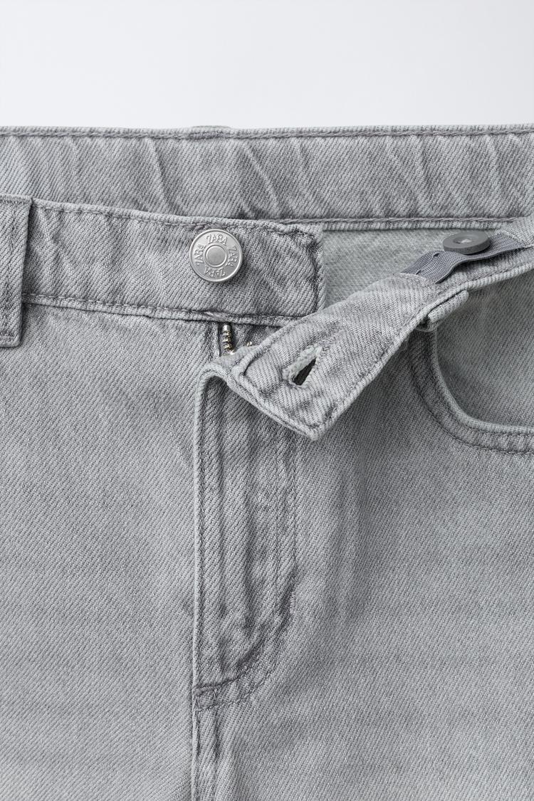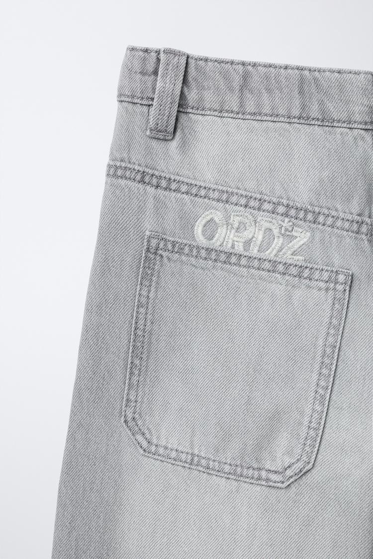 ZARA ДЖИНСЫ WIDE LEG С ВЫШИТЫМ ТЕКСТОМ, СВЕТЛО-СЕРЫЙ
