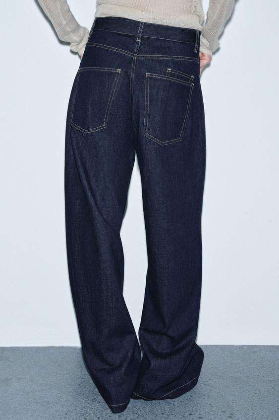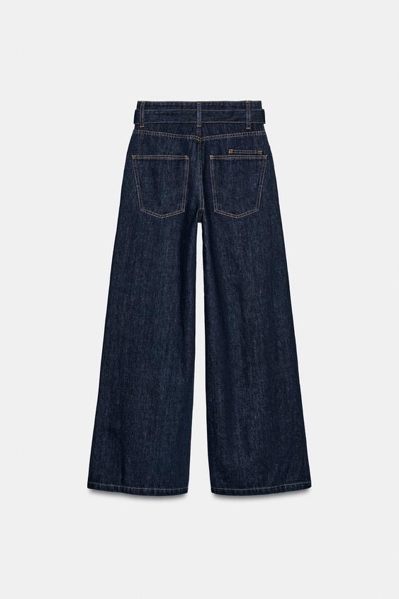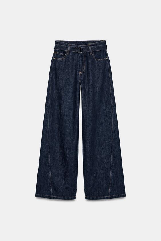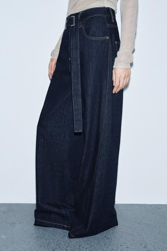 ZARA ДЖИНСЫ WIDE LEG С ВЫСОКОЙ ПОСАДКОЙ И РЕМНЕМ — ZW COLLECTION, СИНИЙ