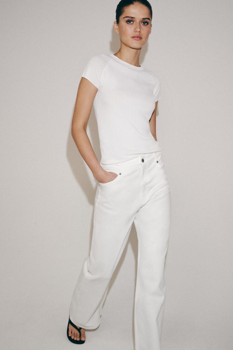 ZARA ДЖИНСЫ WIDE LEG С ВЫСОКОЙ ПОСАДКОЙ — ZW COLLECTION, БЕЛЫЙ
