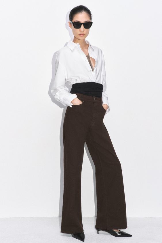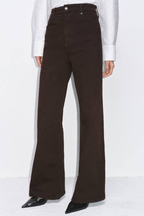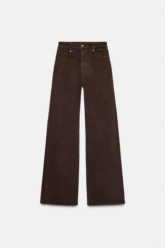 ZARA ДЖИНСЫ WIDE LEG С ВЫСОКОЙ ПОСАДКОЙ — ZW COLLECTION, КОРИЧНЕВЫЙ