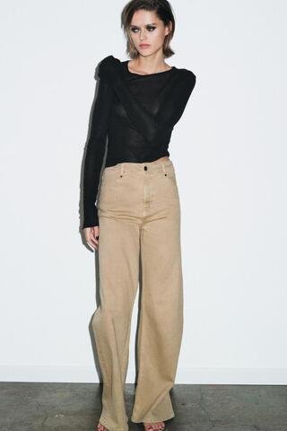ZARA ДЖИНСЫ WIDE LEG С ВЫСОКОЙ ПОСАДКОЙ — ZW COLLECTION, ПЕСОЧНЫЙ