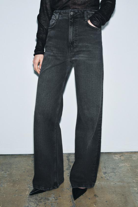 ZARA ДЖИНСЫ WIDE LEG С ВЫСОКОЙ ПОСАДКОЙ — ZW COLLECTION, СЕРЫЙ