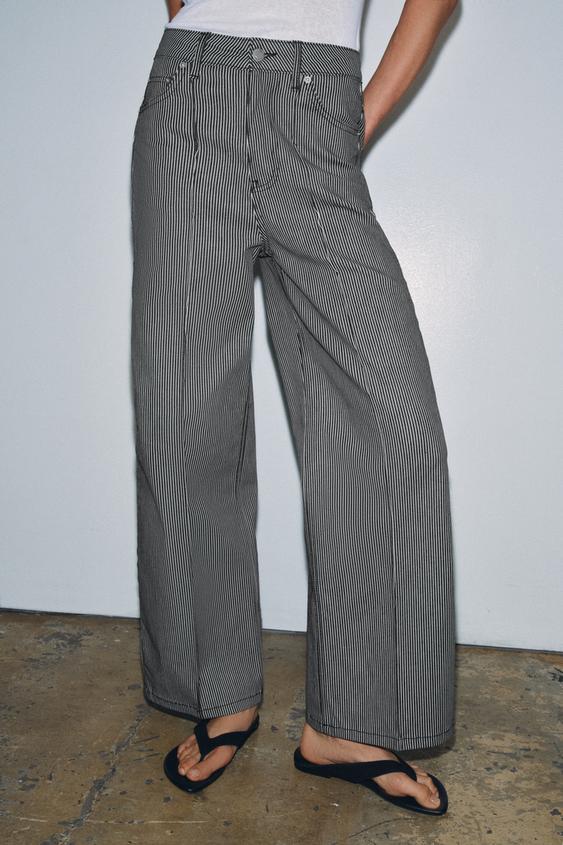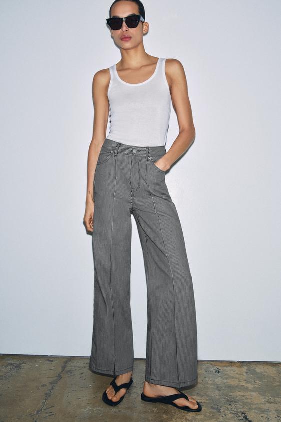 ZARA ДЖИНСЫ WIDE LEG С ВЫСОКОЙ ПОСАДКОЙ — ZW COLLECTION, СЕРЫЙ