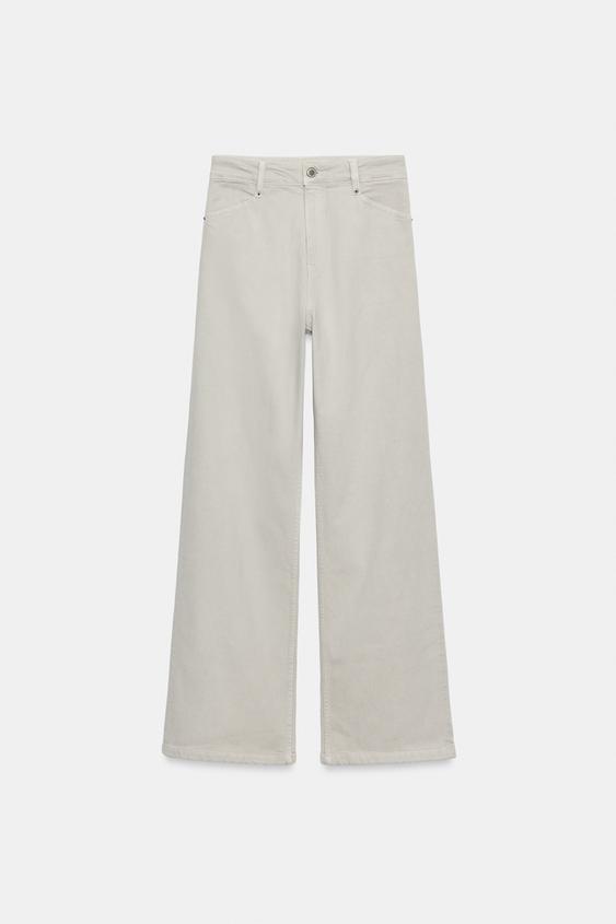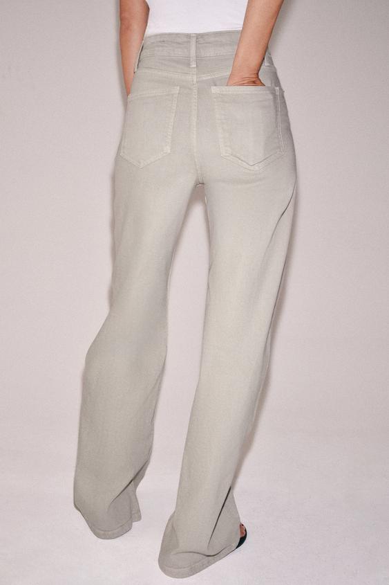 ZARA ДЖИНСЫ WIDE LEG С ВЫСОКОЙ ПОСАДКОЙ — ZW COLLECTION, ЖЕМЧУЖНО-СЕРЫЙ
