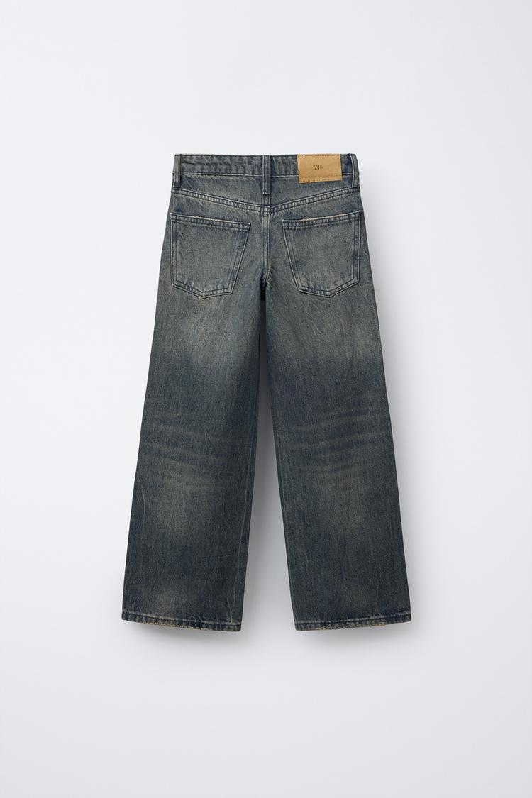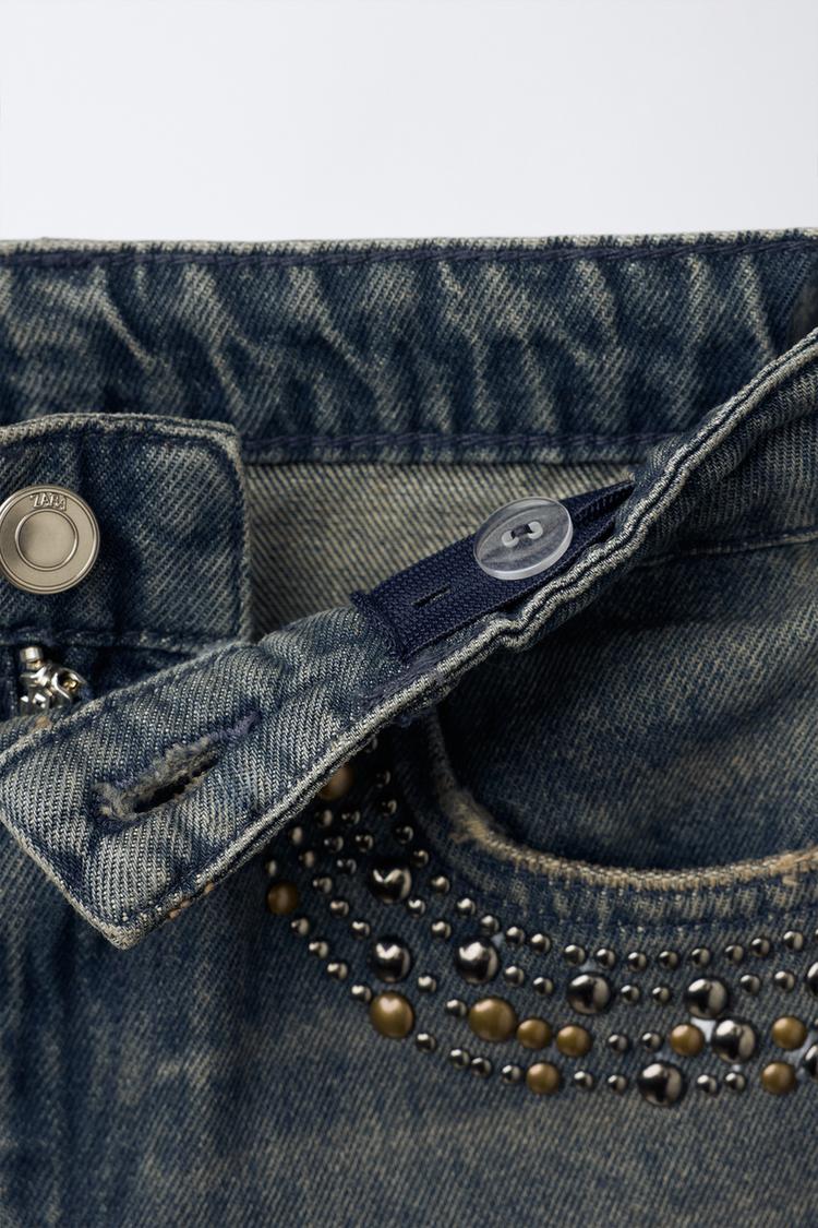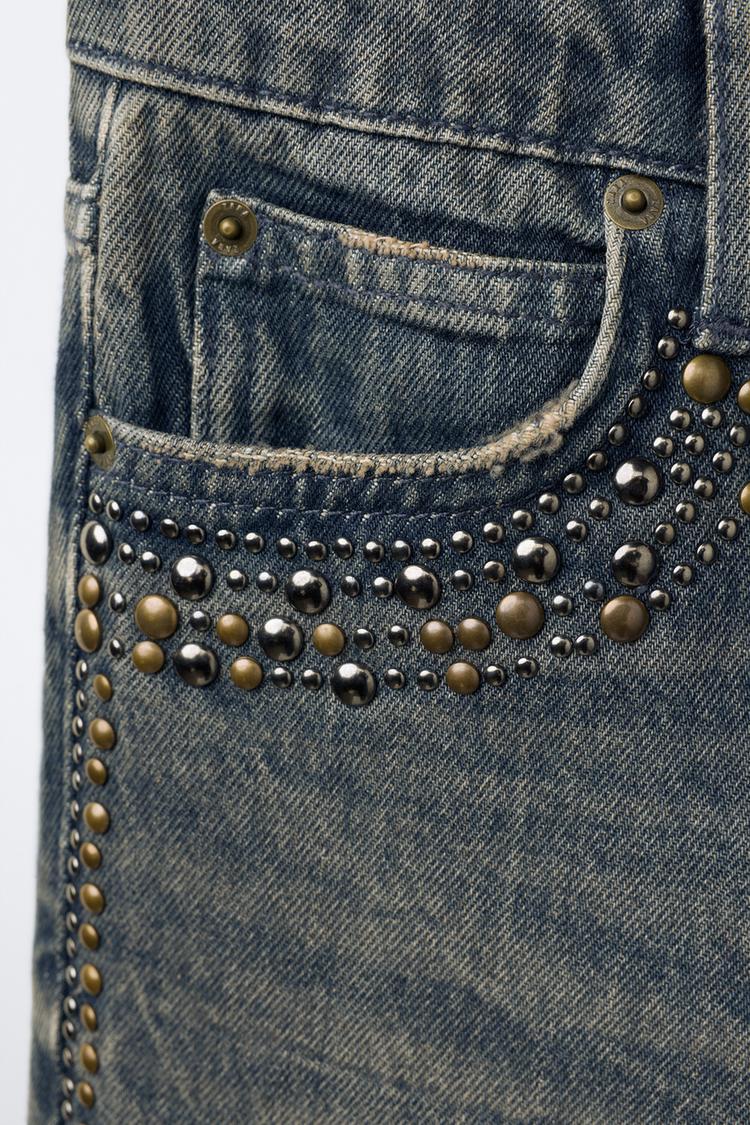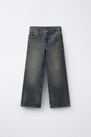 ZARA ДЖИНСЫ WIDE LEG С ЗАКЛЕПКАМИ, ЭКРЮ/СИНИЙ
