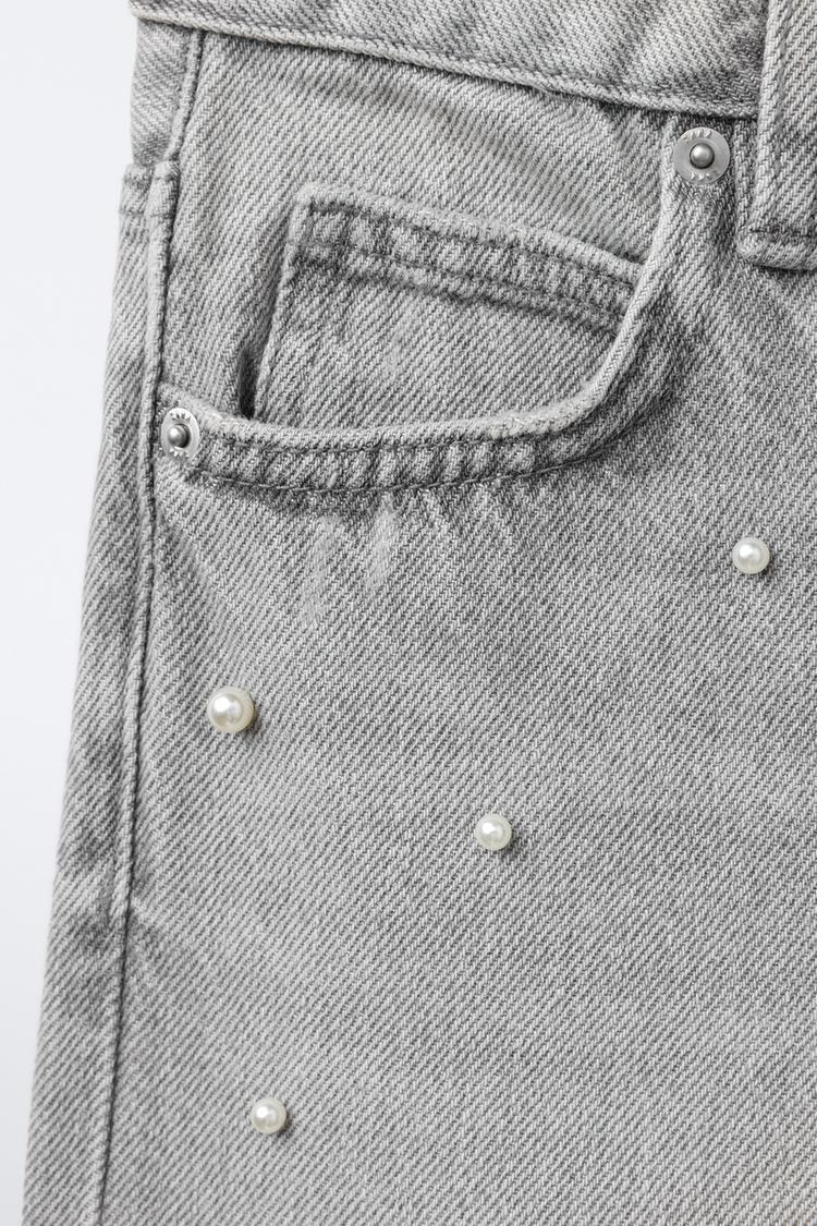 ZARA ДЖИНСЫ WIDE LEG С ЖЕМЧУГОМ, СЕРЫЙ