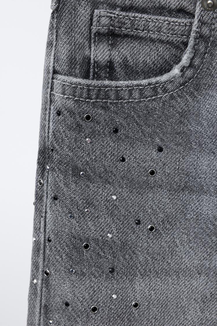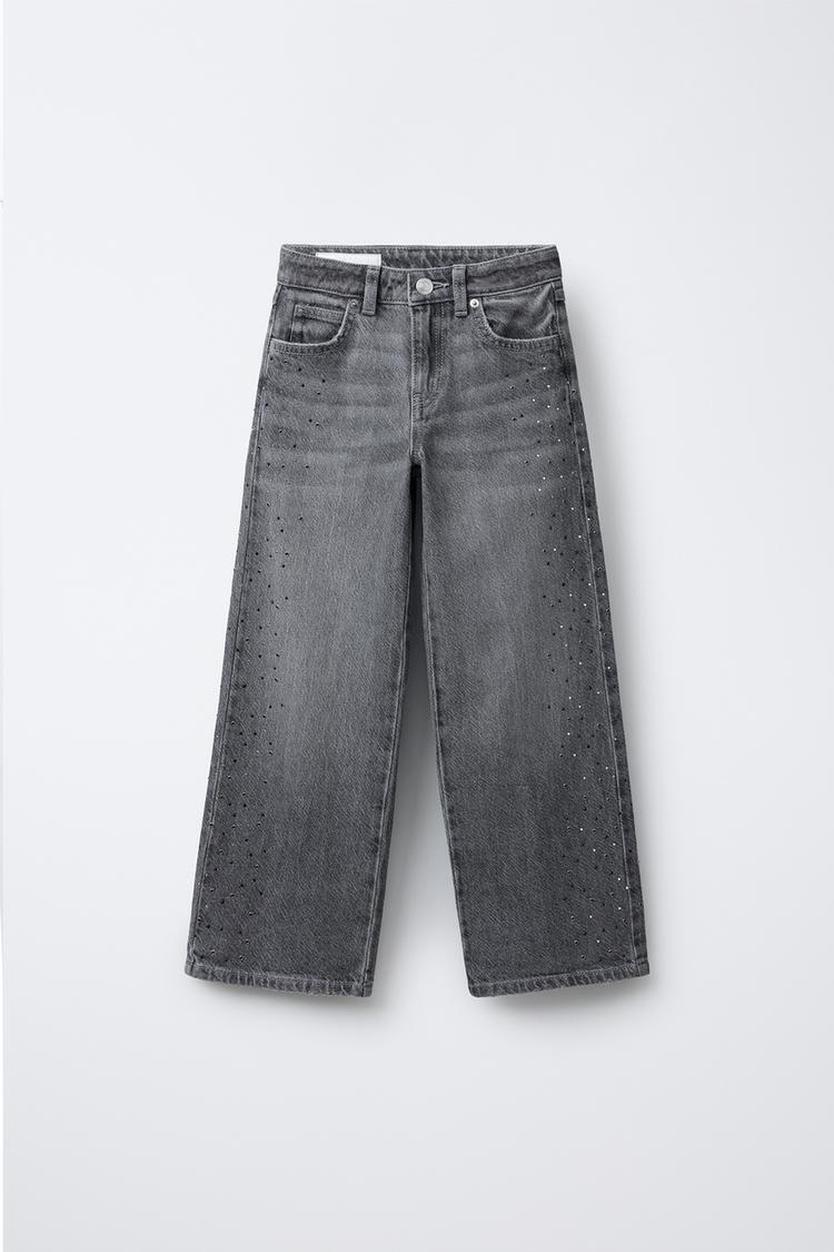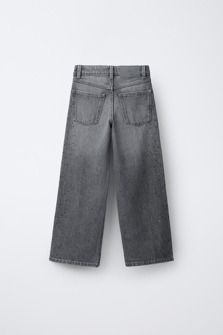 ZARA ДЖИНСЫ WIDE LEG СО СТРАЗАМИ, СЕРЫЙ