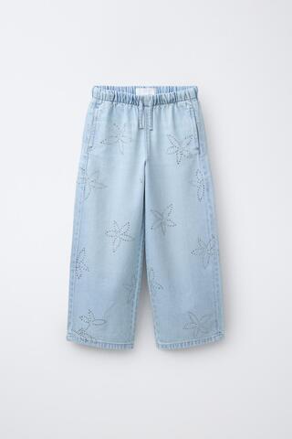 ZARA ДЖИНСЫ WIDE LEG СО СТРАЗАМИ, СИНИЙ