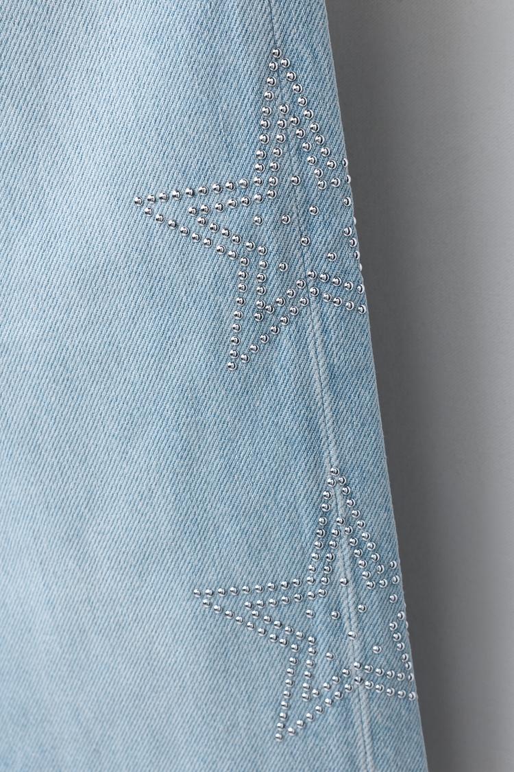 ZARA ДЖИНСЫ WIDE LEG СО ЗВЕЗДАМИ, ГОЛУБОЙ